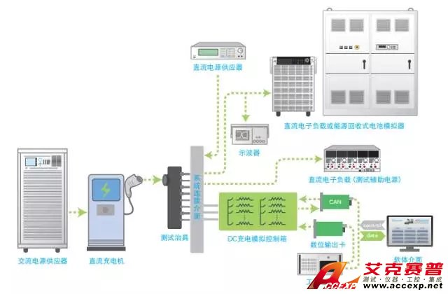 電動(dòng)汽車傳導(dǎo)充電互通性測試規(guī)范等要求對產(chǎn)品進(jìn)行測試,所以此系統(tǒng)不但提供了電氣特性測試,也進(jìn)行通信協(xié)議測試,可以模擬實(shí)際充電樁在操作時(shí),同時(shí)輸出功率與通信,可測試充電樁是否會(huì)在大功率傳輸過程中所產(chǎn)生的磁場而干擾到通信。并可模擬各信號線在充電過程中 Open/Short/CC1信號電壓變化時(shí)充電樁相應(yīng)的保護(hù)動(dòng)作及回應(yīng)間已排查通訊隱患。