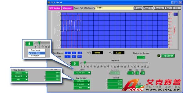 用戶可使用Battery DCR Measurement Software軟件,撘配Chroma 63600系列電子負載來測試。此軟件可設定量測直流阻抗的方式,并編輯放電程序,來自動測試電池芯在不同電量(SOC)下的直流阻抗,并產生結果報表。