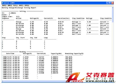 中茂 Chroma 電池測試及自動化解決方案提供電池充放電測試軟件,整合直流電源及電子負載來進行電池模塊測試,此系統可方便研發/品保測試電池的: a.容量測試(Capacity Test) b.放電性能測試(Discharge performance),在不同的放電率下得到C-V曲線 c.循環壽命測試 (Endurance in Cycles)。電池充放電測試軟件功能包括編輯測試順序,循環和停止條件,所測電壓 /電流 /電量將被記錄在一個文件中以便之后進行分析。