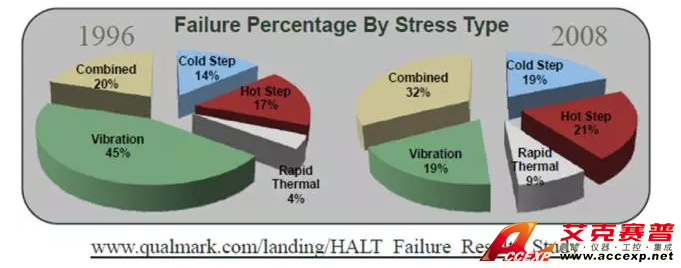2008年調(diào)研顯示沒有Qualmark加速可靠性技術(shù)支持提供的綜合環(huán)境應(yīng)力,32%的故障模式將被錯(cuò)過。常規(guī)的設(shè)計(jì)測試技術(shù)(只有振動(dòng)與只有溫度),與現(xiàn)今的電子產(chǎn)品,找出故障模式的效果是比較差的。