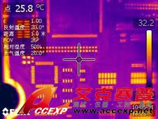 圖為紅外熱像儀(www.zzhbled.com.cn/product/thermography/)分析電路板情況。