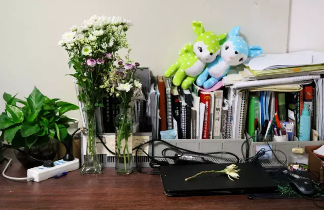 對嘉奇同學而言,在實驗室里最大的收獲,是培養了他更多的抗壓力和受挫力,因為實驗過程中難免會遇到失敗,“并不是所有的路都能走通的”,這種坎坷也慢慢鍛煉自己面對挫折的能力。如果覺得工科生都是每天泡實驗室、沒有生活趣味的人,那就大大的錯了,他們也有著一顆像花一樣的心。吶,剛修剪好枝條的鮮花被插在花瓶中,擺滿書本的案上頓時又有了生氣。