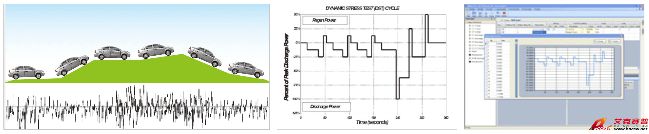 支持動態(tài)工況仿真(Waveform)測試功能,仿真實際行車路況之電流或功率狀態(tài),支持NEDC、FUDS、HPPC等法規(guī)測試標準