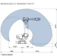 The payload for IRB 6640ID (internal Dressing) is 200 kg which meets the requirements from the heaviest spot welding applications.