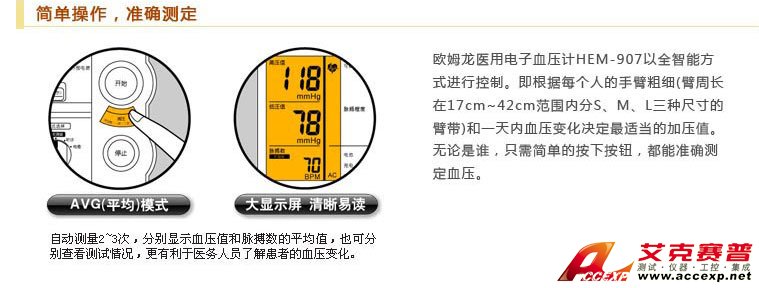 歐姆龍 HEM-907 醫用電子血壓計的產品特點:
