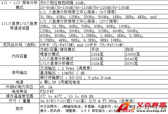 數字顯示:4個位數,更新周期 0.5秒,分辨率 0.1dB | |||
