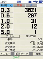 粒徑區分:5段階 (0.3μm、0.5μm、1.0μm、2.0μm、5.0μm以上) |