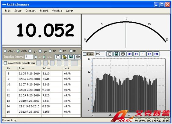 放射性污染物可能會污染您的食物或水。用ACCEXP-FD01B/C增強型核輻射儀,您不必每天檢查輻射水平,其內置的存儲器可自動記錄最近一段時間內的輻射值,如果輻射強度超過報警閾值,將會立刻發出報警提示,同時您還可以通過計算機配套軟件下載測量數據,以便于您觀察和分析。