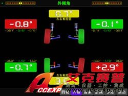 單獨的測量系統(tǒng):(外傾角)功能畫面設(shè)計了,以車輪傾斜變化和顏色的區(qū)分不復(fù)雜,清晰及容易解說 | 方向盤自動計算調(diào)整系統(tǒng) |