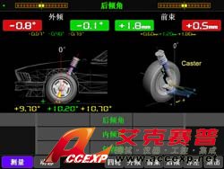 單獨的測量系統:(外傾角)功能畫面設計了,以車輪傾斜變化和顏色的區分不復雜,清晰及容易解說 | |
