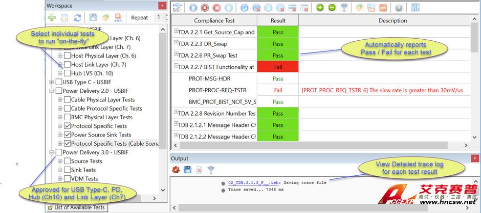 ●一致性測(cè)試選項(xiàng)-Voyager是經(jīng)過(guò)認(rèn)證的鏈路驗(yàn)證系統(tǒng)(LVS),用于執(zhí)行鏈路,集線器,PD和USB Type-C一致性測(cè)試