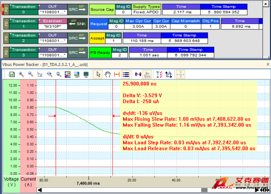 ●Power Tracker ™ -與PD協議消息同步的VBUS和CC電壓的圖形視圖