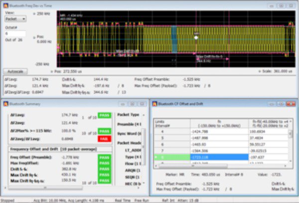 增加了兩個新選項,幫助您在時域、頻域和調制域中進行基于 Bluetooth SIG 標準的發射機 RF 測量。選件 SV27 支持 RF 規定的基本速率和低能耗發射機測量。TS.4.2.0?和 RF-PHY.TS.4.2.0?測試規范它還解調并提供增強數據速率數據包的符號信息。選件 SV31 支持藍牙 5?標準(LE 1M、LE 2M、已編碼 LE)和核心規范中規定的測量。這兩個選件也解碼所傳輸的物理層數據并使用顏色編碼符號表中的數據包字段以便清晰標識。