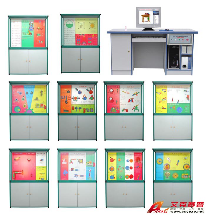 TSI 10-78型多媒體智能控制《機械原理》陳列柜是根據大、中專院校、技校、職業學校的機械原理教學大綱而設計的一套電化多媒體教學設備。陳列柜共分十個柜和一個電腦控制臺,進行多媒體聲控同步解說演示。由PC機電腦控制順序或任選運行每個柜模型動作,同時電腦播放圖像或三維動畫同步模型動作。