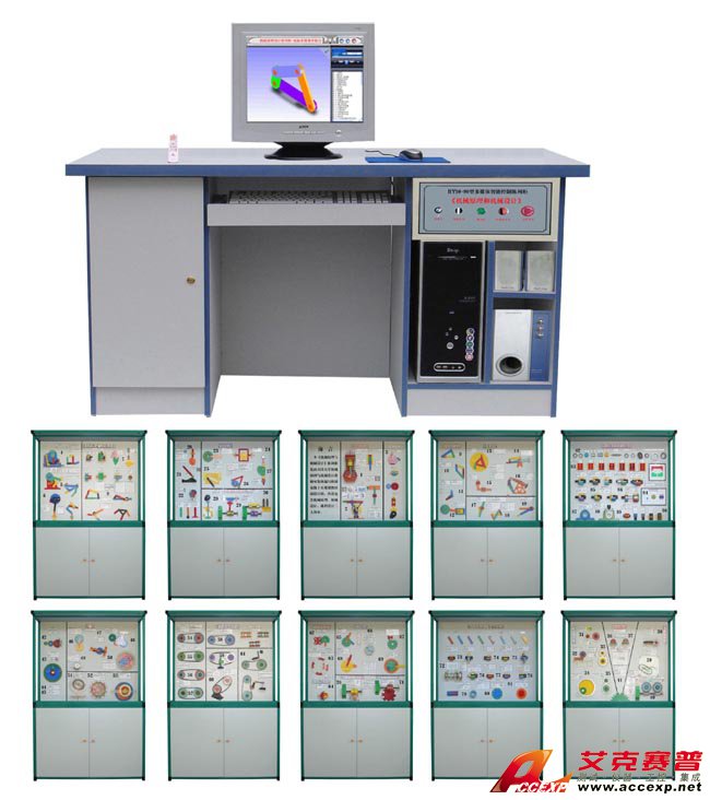 TSI 10-90型多媒體智能控制《機(jī)械原理與機(jī)械設(shè)計(jì)》陳列柜是根據(jù)天津大學(xué)機(jī)械原理與機(jī)械設(shè)計(jì)教研室集體編寫的國家級十五規(guī)劃教材而設(shè)計(jì)的一套電化多媒體教學(xué)設(shè)備,內(nèi)容包含機(jī)械原理、機(jī)械設(shè)計(jì)、課程設(shè)計(jì)三大部分。陳列柜共分十個(gè)柜和一個(gè)電腦控制臺,進(jìn)行多媒體聲控同步解說演示。由PC機(jī)電腦控制順序或任選運(yùn)行每個(gè)柜模型動(dòng)作,同時(shí)電腦播放圖形同步模型動(dòng)作。并且每個(gè)柜的內(nèi)容在電腦里用PPT格式編寫,內(nèi)容包含機(jī)械原理、機(jī)械設(shè)計(jì)、課程設(shè)計(jì)等教程數(shù)據(jù),采用Microsoft PowerPoint 演示文稿進(jìn)行幻燈片放映,方便學(xué)員課外進(jìn)行學(xué)習(xí)和研究。TSI 10-90型多媒體智能控制《機(jī)械原理與機(jī)械設(shè)計(jì)》陳列柜上下柜整體采用彩色塑鋼結(jié)構(gòu),堅(jiān)固耐用,外形美觀。