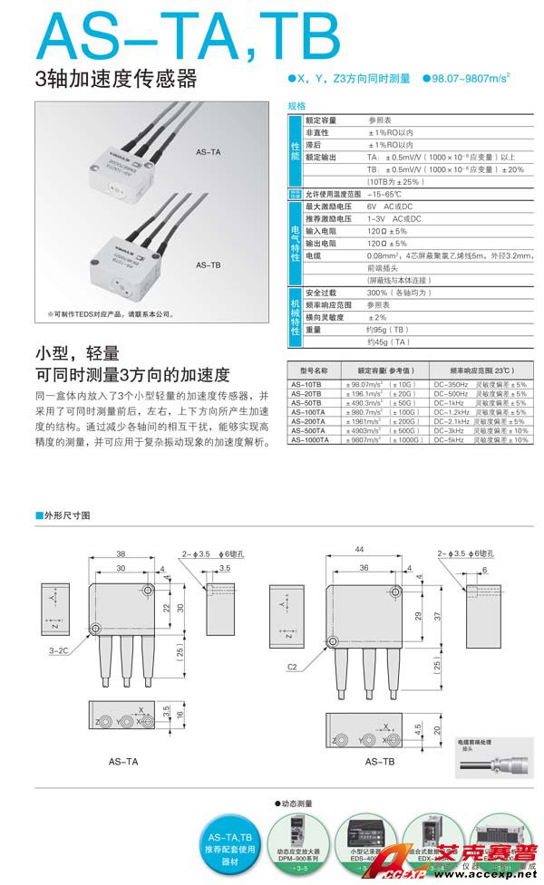 簡(jiǎn)介:KYOWA AS-TA,TB 3軸加速度傳感器