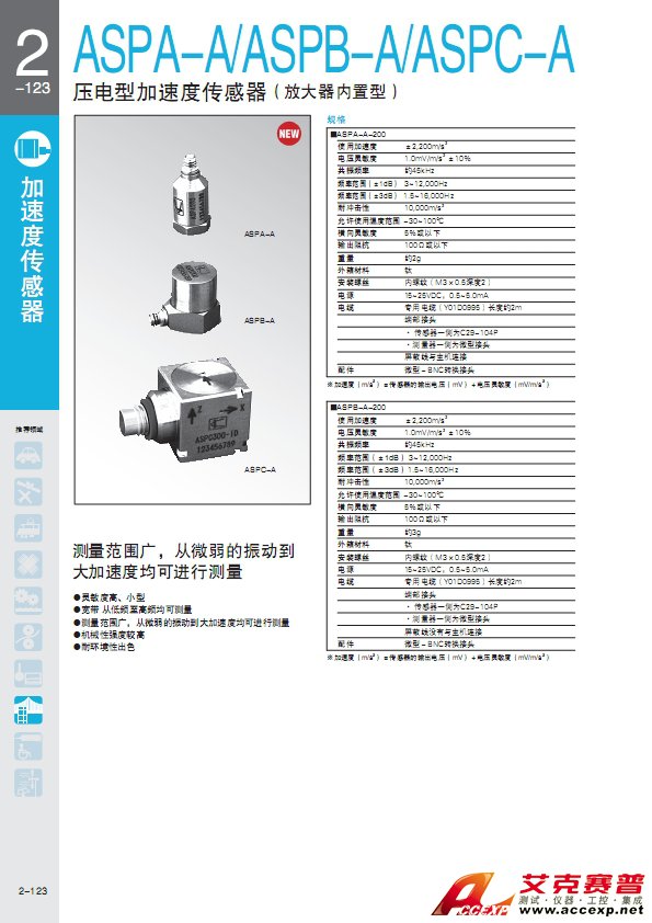 簡介:KYOWA ASPA 壓電型加速度傳感器