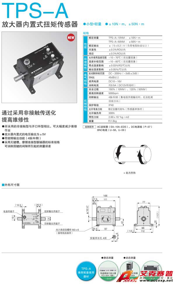 簡介:KYOWA TPS-A 放大器內置式扭矩傳感器