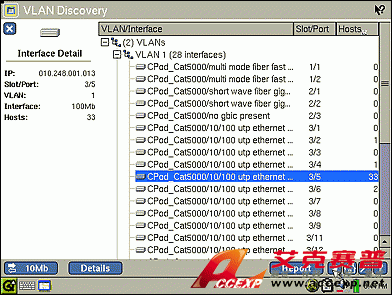 EtherScope 可為您識別出已發現的交換機接口上所配置的 VLAN,然后您可向下查看接口狀態和連接主機的詳細信息,并分析接口數據的趨勢。