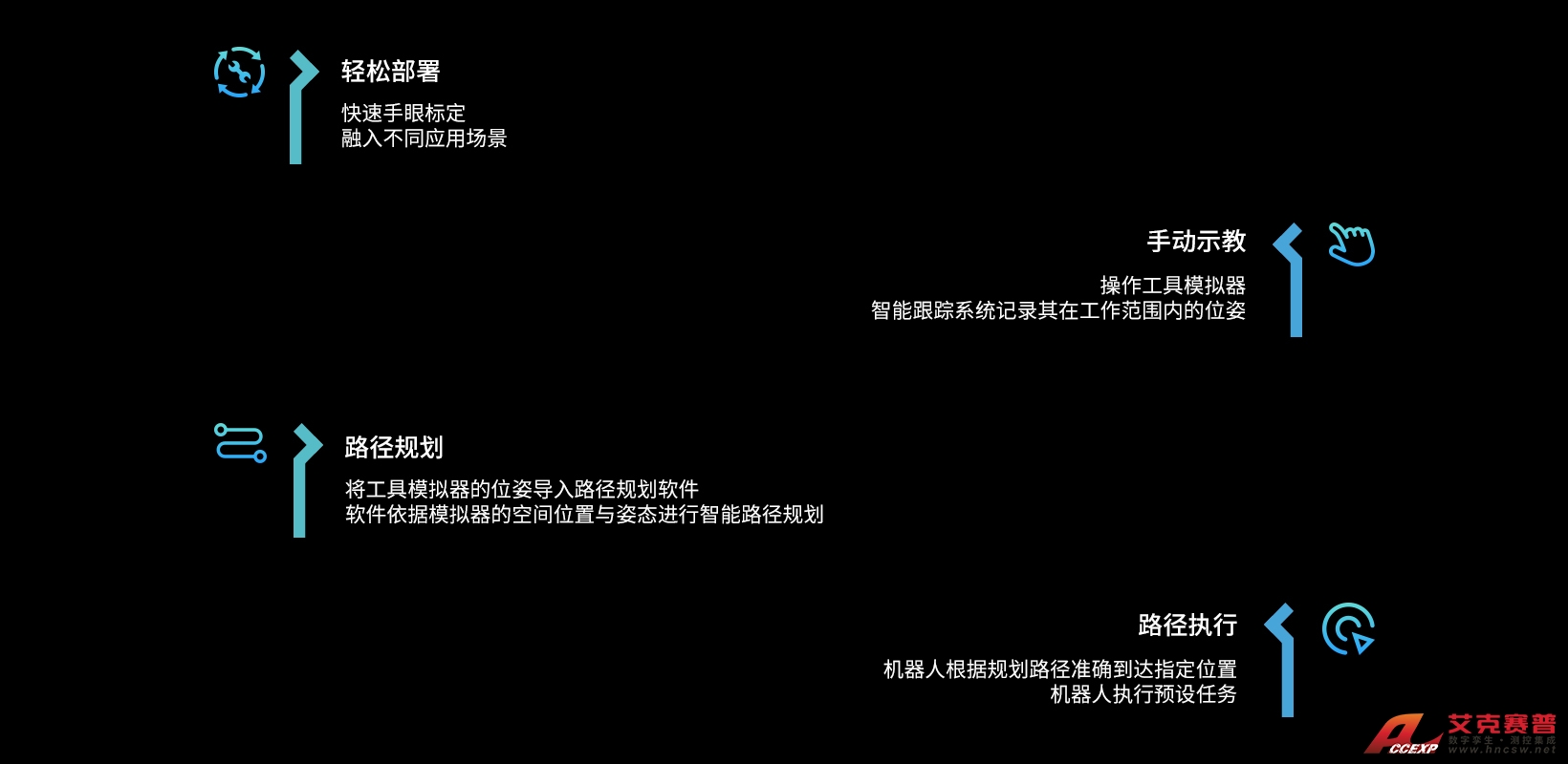無論是專業工程師還是普通的技術人員,無需直接操作實際機器人,只需操作工具模擬器模擬實際工具外形,通過智能跟蹤系統獲取TCP位置和姿態,即可進行機器人路徑模擬,有效降低操作門檻。