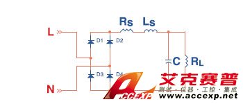 圖2為橋式整流的典型線路。在RLC模式下,使用者可透過設(shè)定RLC值,100%模擬實(shí)際待測(cè)物的行為。圖3 & 4分別是透過實(shí)際被動(dòng)負(fù)載(電阻、電感、電容)與使用RLC負(fù)載模式量測(cè)。圖5則為定電流模式下所得到的波形。