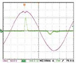 當(dāng)待測(cè)物有較大的輸出阻抗時(shí),如發(fā)電機(jī),若無自動(dòng)頻寬調(diào)整功能時(shí),電流波形會(huì)較不穩(wěn)定,如圖8所示。大部分的情況下,負(fù)載電流會(huì)產(chǎn)生震蕩并影響測(cè)試結(jié)果的準(zhǔn)確性。