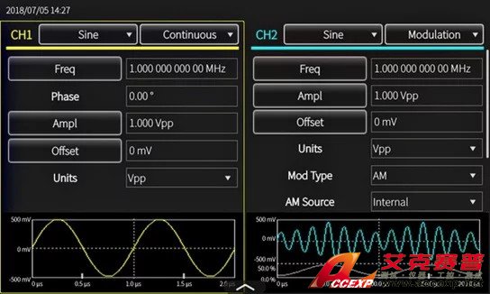 在基本模式下,AFG31000 生成傳統(tǒng)函數(shù)和任意波形。觸摸屏和前面板控制功能可以簡便地進(jìn)行設(shè)置。