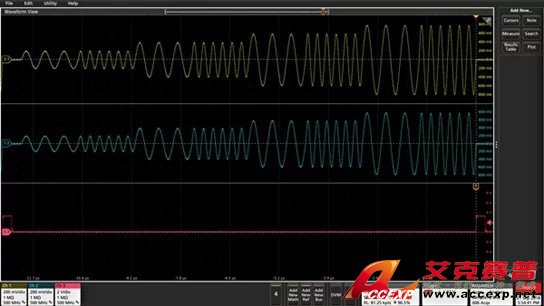 大多數(shù)應(yīng)用需要一條或兩條輸出通道,但某些應(yīng)用則要求更多的通道。例如,為了仿真三相電信號,工程師通常需要同步三臺 2 通道發(fā)生器,每個相位上的電壓和電流各一臺。以前這會耗費很長時間,因為要求在不同 AFG 儀器之間連接許多電纜,還需要在所有儀器上一層層改變菜單。