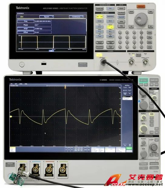 大多數(shù)波形發(fā)生器默認(rèn)被測器件的阻抗是 50 Ω。但是,大多數(shù)被測器件的阻抗并不是 50 Ω。這種不匹配會導(dǎo)致 AFG 上設(shè)置的波形與 DUT 上的實際信號不一致。