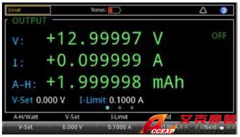 在2281S 電池測試功能中,可以在電池上執(zhí)行充電/ 放電測試。充電電流在0 ~ 6A 之間,最大放電電流是1A。在充電期間,可以設置內(nèi)部6 位半萬用表的采樣間隔, 連續(xù)采樣充電電流和電壓。通過這種方式,可以自動計算電池的容量及其內(nèi)部電阻 (ESR 值)。