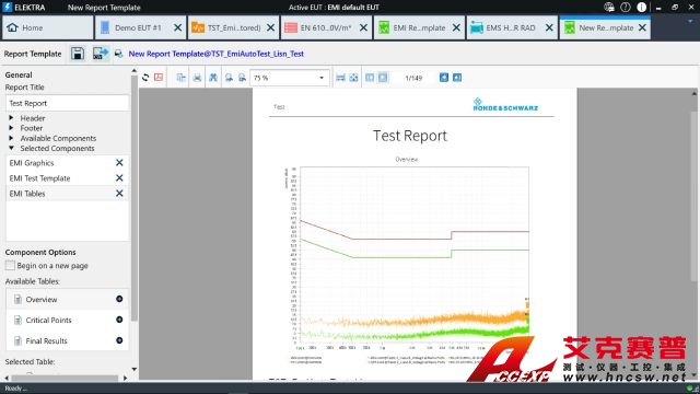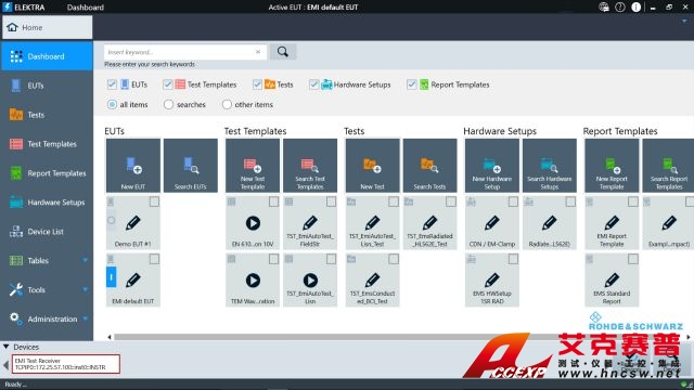 R&S?ELEKTRA 測試軟件控制完整的 EMC 測試系統(tǒng),自動(dòng)進(jìn)行被測設(shè)備 (EUT) 的騷擾 (EMI) 和抗擾度 (EMS) 認(rèn)證測試。R&S?ELEKTRA 根據(jù)通用標(biāo)準(zhǔn)簡化測試系統(tǒng)配置和測試描述。它可加快執(zhí)行測試,并迅速生成全面的測試報(bào)告。