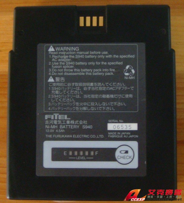 FITEL古河 S940 電池技術(shù)參數(shù): 12V, 4500 mAh, 54W , Ni-MH電池,適用于古河S176CF/CR,S199M12,S199S光纖熔接機。